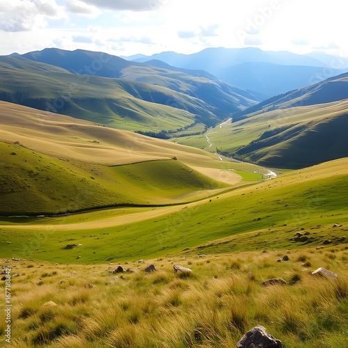 © M.Hamza, Fototapeta premium Rolling meadow valley