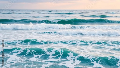Fototapeta premium Rolling ocean waves approaching shore, whitecaps visible, texture, energy