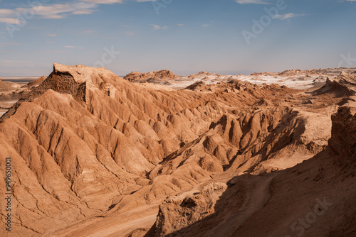 Fototapeta premium Rolling, rugged terrain of Cordillera del Sal showcases its unique ochre...