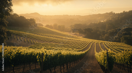 © Bianca, Fototapeta premium Rolling Vineyard Hills at Golden Hour
