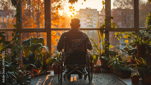 Naklejka premium Rollstuhlfahrer im Wintergarten, made by AI