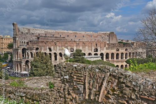 © lamio, Fototapeta premium Roma, il Colosseo dalle antiche rovine e ruderi del colle Palatino