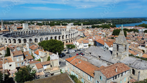 Obraz premium Roman amphitheater in Arles, a picturesque town located on the Rhone river in...