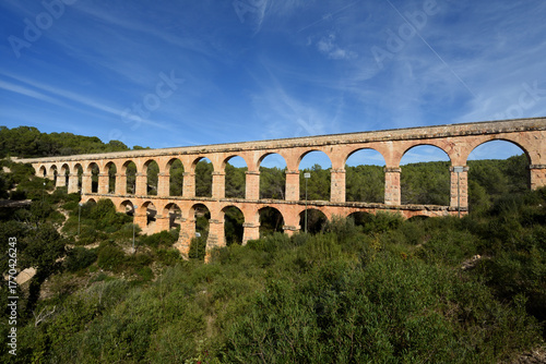 © Curto, Fototapeta premium Roman Aqueduct, Les Ferreres or Devil's Bridge, Tarragona, Catalonia, Spain