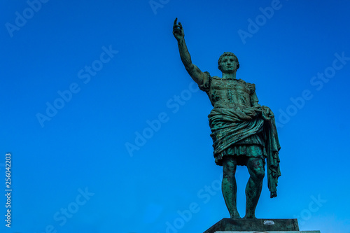 Fototapeta premium Roman emperor bronze statue on blue sky background