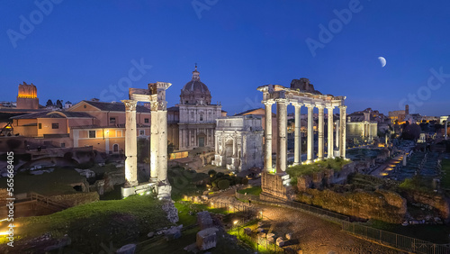 © Francesco🇮🇹 Todaro, Naklejka premium Roman Forum by night with moon - Rome
