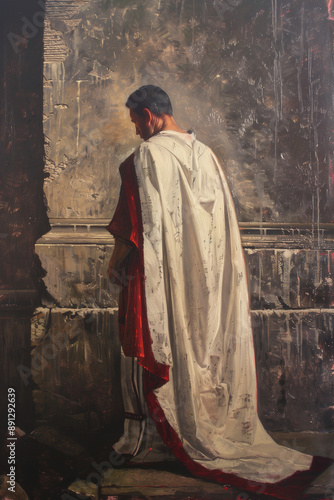 Naklejka premium Roman Pontius Pilate wearing a traditional toga stands contemplatively by a...