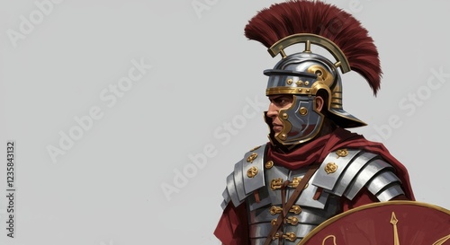 © purrfiction, Fototapeta premium Roman soldier in armor stands vigilant, showcasing historical attire and weaponry