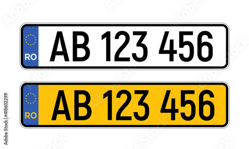Fototapeta premium Romania car license plate isolated country drive symbol. Transportation...