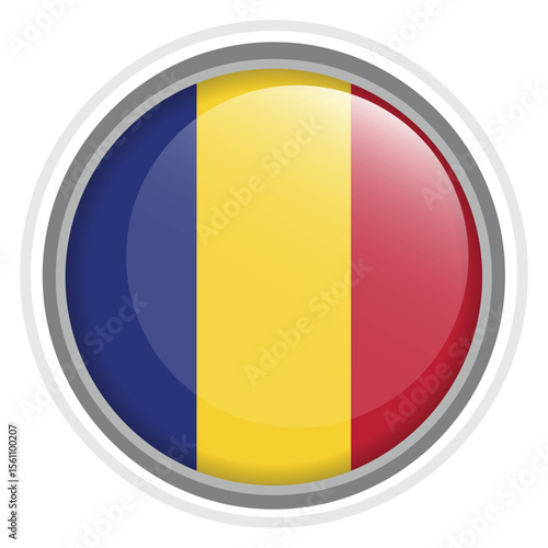 © Zainul, Fototapeta premium Romania Flag Button Icon Glossy Round National Emblem Vector Illustration