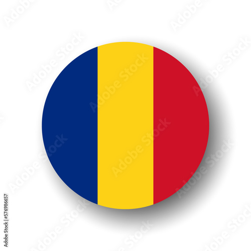 © pyty, Fototapeta premium Romania flag - flat vector circle icon or badge with dropped shadow.