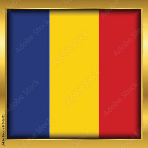 Fototapeta premium Romania Flag,Romania flag golden square button,Vector illustration eps10.