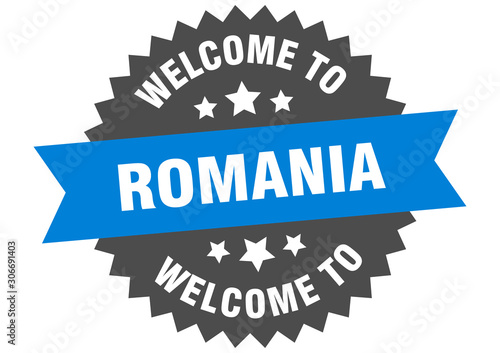 © Aquir, Fototapeta premium Romania sign. welcome to Romania blue sticker
