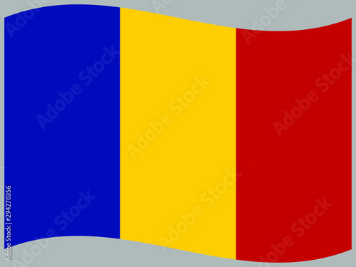 Fototapeta premium Romania Waving national flag, isolated on background. original colors and proportion. Vector illustration symbol and element, for travel and business from countries set