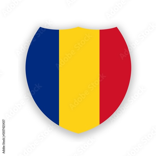 © Lesia, Fototapeta premium Romanian national flag in the shape of a shield isolated on white. Illustration. Flag of Romania