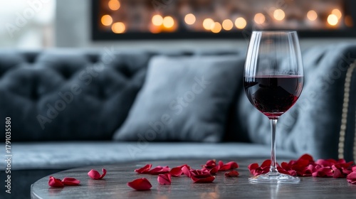 © neirfy, Naklejka premium Romantic and elegant Valentine's Day evening by the fireplace