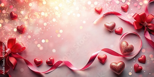 Obraz premium Romantic background with small hearts and ribbon for love-themed designs