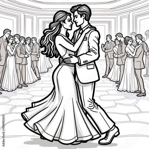 © dragon_fang, Fototapeta premium Romantic Couple Dancing At Elegant Ballroom Event