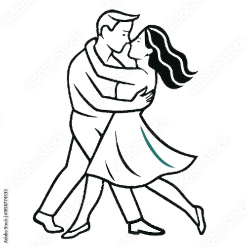 © Santu, Fototapeta premium Romantic couple dancing line art illustration isolated on white background