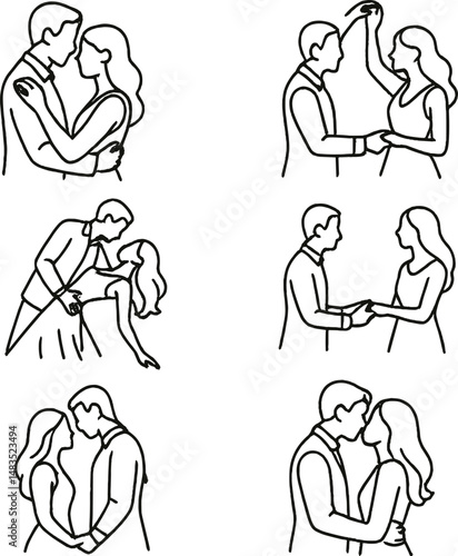 Fototapeta premium Romantic dance silhouettes icons set – simple, elegant and expressive symbols
