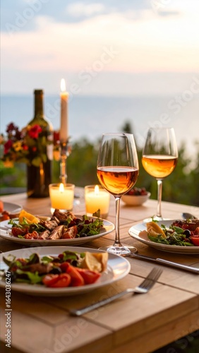 Fototapeta premium Romantic Dinner by the Sea: Sunset Feast