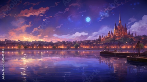 Fototapeta premium Romantic evening cityscapes with blurred lights and neon signs creating enchanting atmosphere