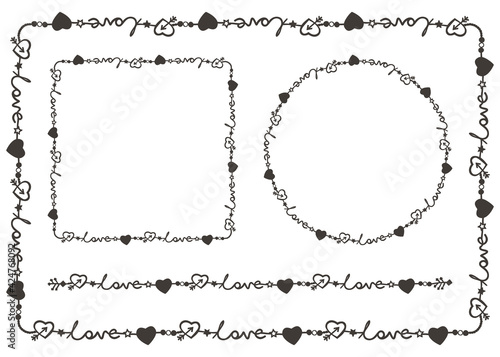 Fototapeta premium Romantic frames and seamless pattern brush. Flat monochromatic vector.
