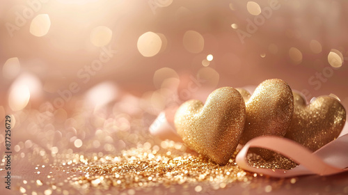 © ZIA CREATIVE, Naklejka premium "Romantic Glitter Hearts: A Captivating Love Wallpaper Filled with Sparkling Hearts and Glittering Sparkle for an Elegant Background of Romance"
