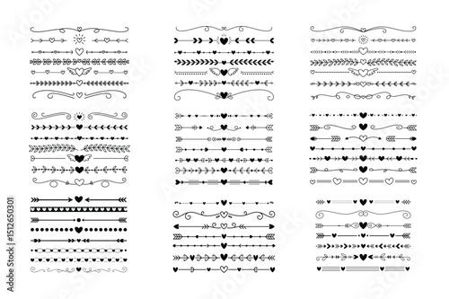 Fototapeta premium Romantic Heart and Arrow Decorative Dividers