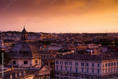 Naklejka premium Romantic illuminated old Rome city square with basilica view