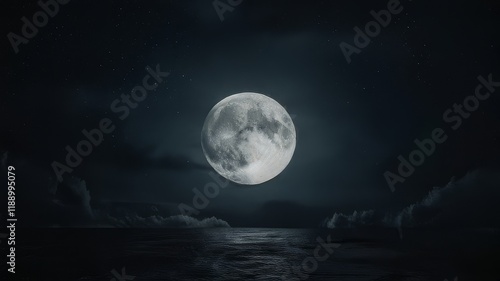 © Jahanzaib, Naklejka premium Romantic Moon In Starry Night Over Clouds