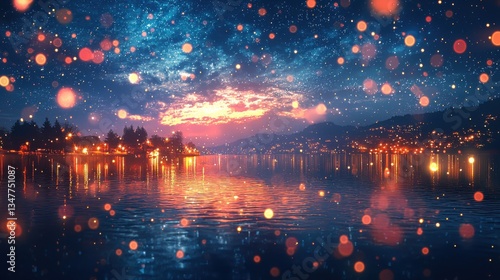 © gankevstock, Naklejka premium Romantic night under fireworks with reflections on water