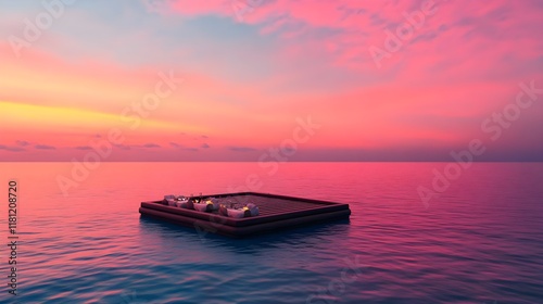 © terat, Naklejka premium romantic ocean sunset dinner float - pink/purple color palettes