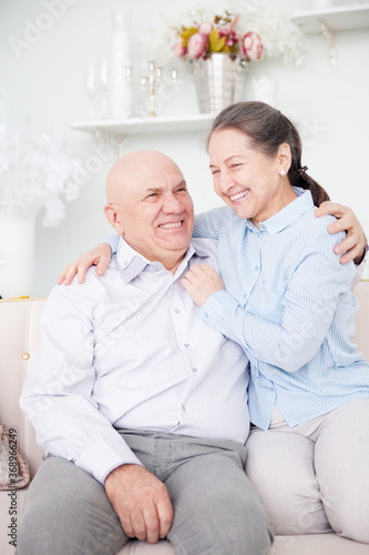 © DariaTrofimova, Fototapeta premium Romantic old couple together in room