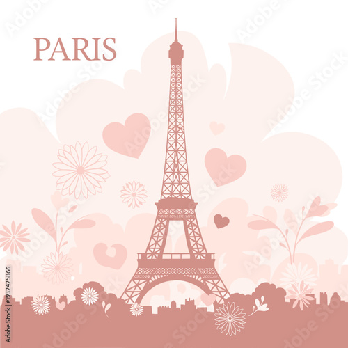 Fototapeta premium Romantic Pink Eiffel Tower Illustration with Floral Background