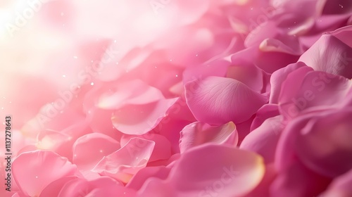 © AS Studio, Naklejka premium Romantic Pink Rose Petals Falling into a Heart Shape on a Dreamy Pastel Background