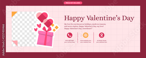 © Ali, Fototapeta premium Romantic pink Valentine’s Day banner with heart elements and elegant typography