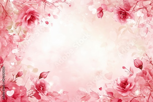 © Kiatisak78, Fototapeta premium Romantic Red Floral Frame with Delicate Hearts for Valentine's Day Background Design
