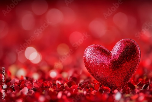 © Andrei, Fototapeta premium Romantic Red Glitter Heart on Valentines Day Background, Perfect for Greeting Cards and Designs