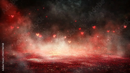 © Saimon, Fototapeta premium Romantic Red Glitter Hearts Background Valentines Day