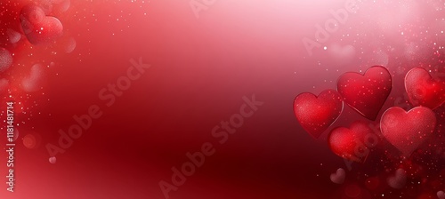 © Ilja, Obraz premium Romantic Red Valentine s Day Background with Floating 3D Hearts and Sparkling Bokeh Effect