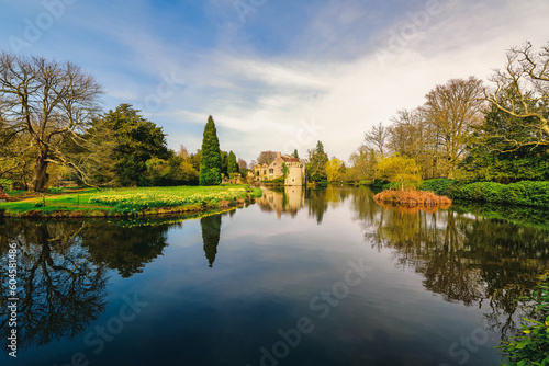 © jay, Fototapeta premium romantic ruined castle at a lake with reflections