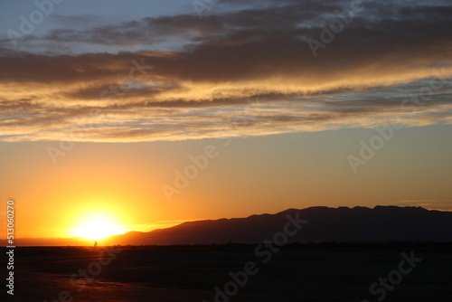 Fototapeta premium romantic sunset at the beach over the sea and mountains