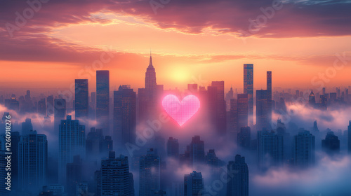 Fototapeta premium Romantic Sunset Over City Skyline with Heart Symbol