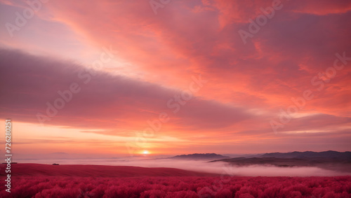 Obraz premium Romantic sunset with beautiful pink, orange and red clouds