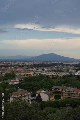 Obraz premium Romantic sunset with landscape in contrast between Vesuvius volcano shadows and blue sky