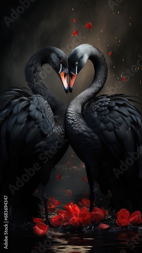 Fototapeta premium Romantic swan couple with heart shapes on Valentine's Day