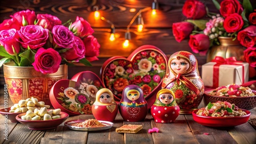 Fototapeta premium Romantic Valentine's Day Product Photography in Russia Featuring Traditional...