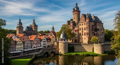 © Alex, Fototapeta premium Romantic view of B?dingen Castle and medieval architecture in Hessen Germany