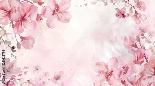 Obraz premium Romantic watercolor floral frame with cherry blossoms in soft pink tones